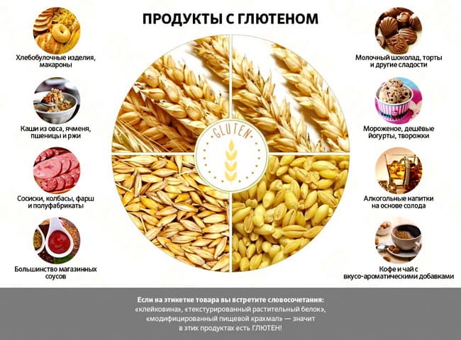Глютен, или клейковина, представляет собой белок, который содержится в злаках: пшенице, ржи и ячмене. Непереносимость глютена (целиакия) может привести к деградации слизистой оболочки стенок кишечника и вызвать необратимые нарушения работы кишечного тракта. Частые симптомы: жидкий стул, вздутие живота, потеря веса, общая слабость и головокружение.